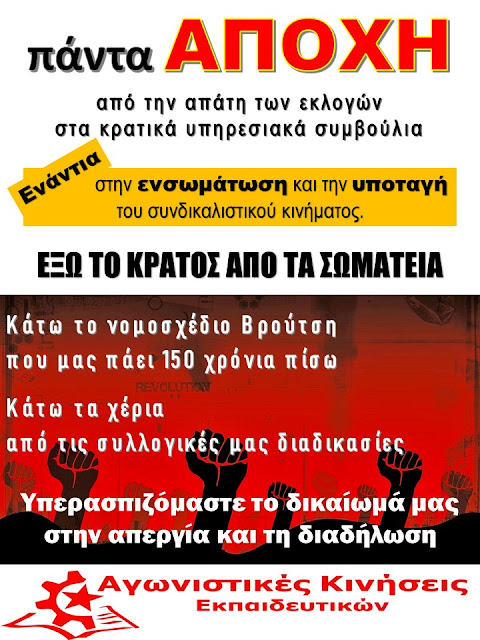 ΑΚΕ: Πάντα ΑΠΟΧΗ από την απάτη των εκλογών για τα κρατικά υπηρεσιακά συμβούλια!